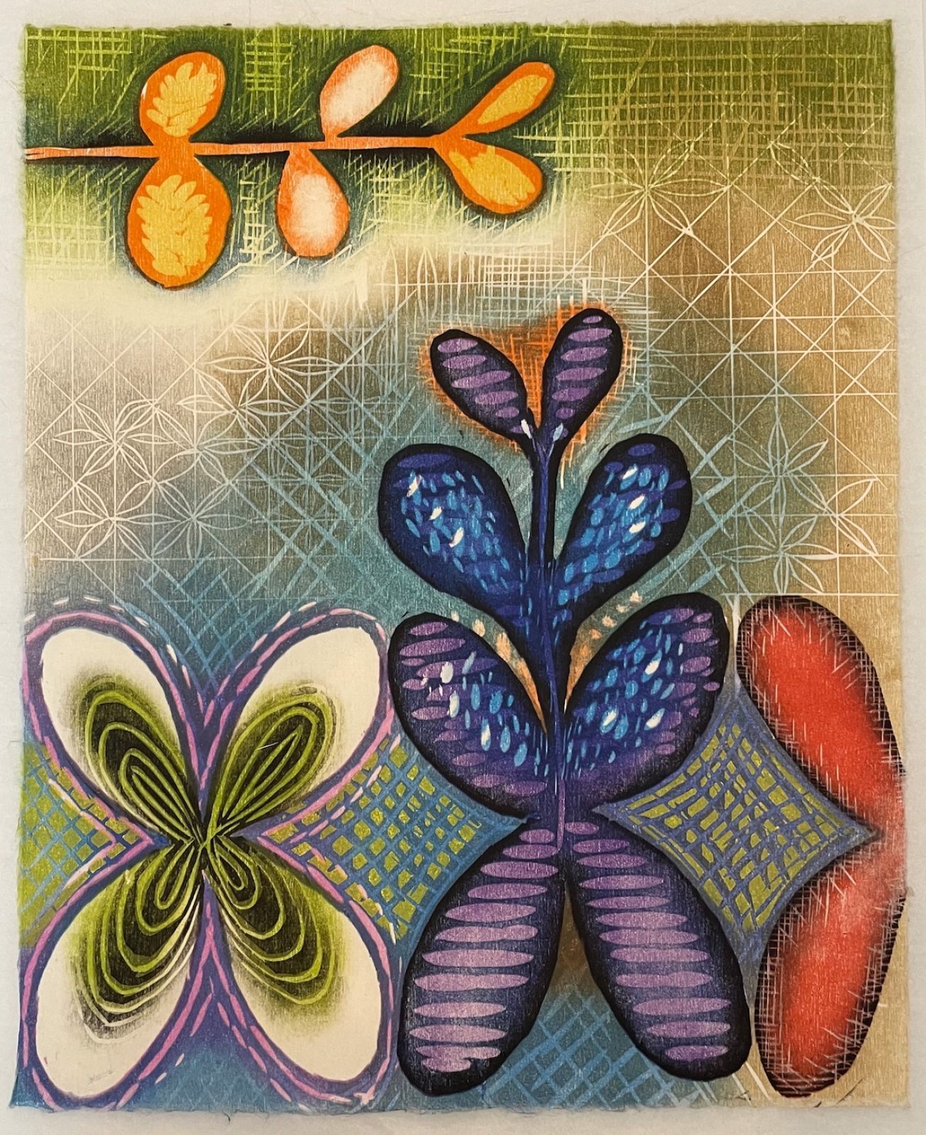 woodcut & mixed media monoprint