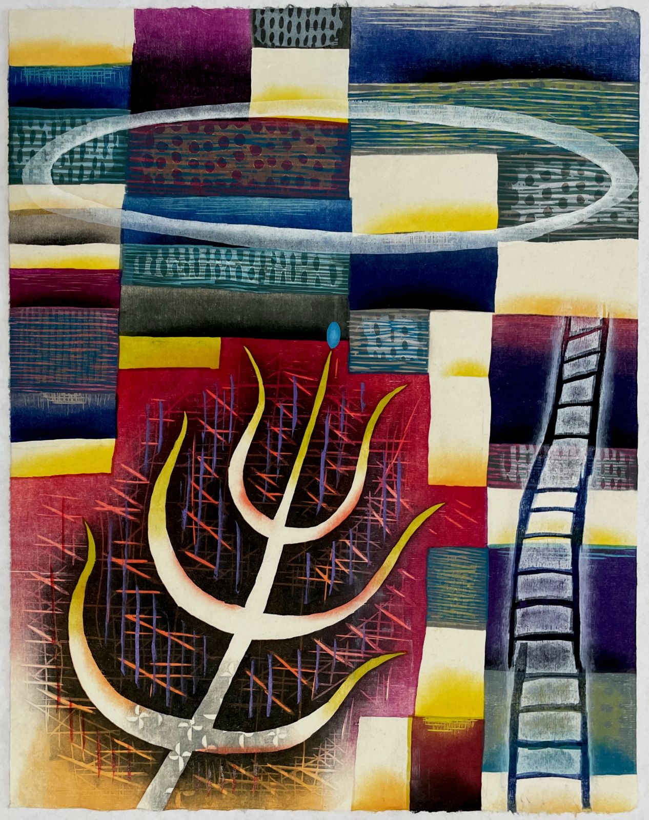 woodcut & mixed media monoprint
